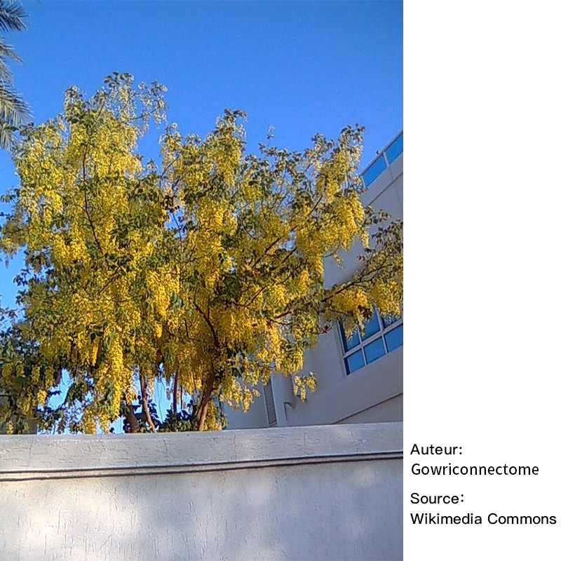 est une espèce originaire d'Asie du Suddu sud du Pakistan en passant par l'est de l'Inde jusqu'en Birmanie et au sud du Sri Lanka. C’est un arbre de taille moyenne (10 à 15 m). Cassia fistula est largement cultivé en tant que plante ornementale dans les zones tropicales et subtropicales. Il fleurit à la fin du printemps (mois de mai dans l’hémisphère nord). Les arbres sont couverts d'une abondante floraison jaune, où les feuilles sont à peine visibles. Sa croissance est meilleure en plein soleil et sur un sol bien drainé. Il tolère la sécheresse et le sel.
