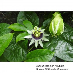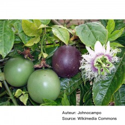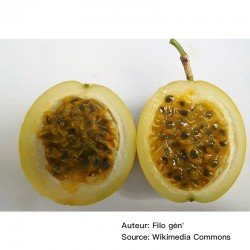 Maracuja, en français appelée Grenadille, est originaire de la moitié nord de L’Amérique du Sud, donc des pays (sub-)tropicaux. C’est une plante grimpante qui peut produire des pousses de 10 m de long. Depuis beaucoup d’années elle est cultivée dans un grand nombre de pays en Asie, en Australie et en Afrique du Sud et Est. Le fruit et son jus sont délicieux; la médicine traditionnelle connaît beaucoup d’utilisations de différentes parties de la plante.